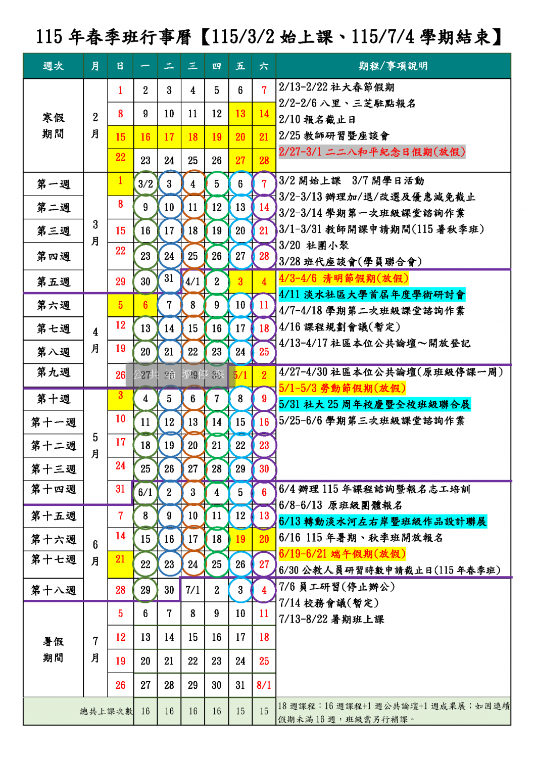 週一至週五 14:00~20:00 | E-mail:university@tamsui.org.tw