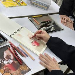 | 球體靜物練習1 | 講解及實例繪畫出球體的凹與凸,練習構圖配置,討論構圖、上色的各種可能與實際操作。 |